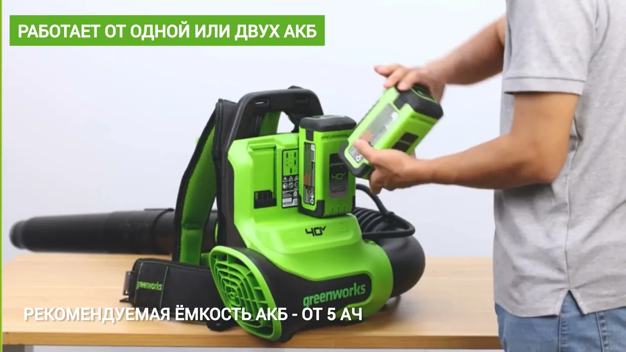 Воздуходув аккумуляторный ранцевый Greenworks 40V GD40BPG2 (1хАКБ 4Ач и ЗУ) б/щ